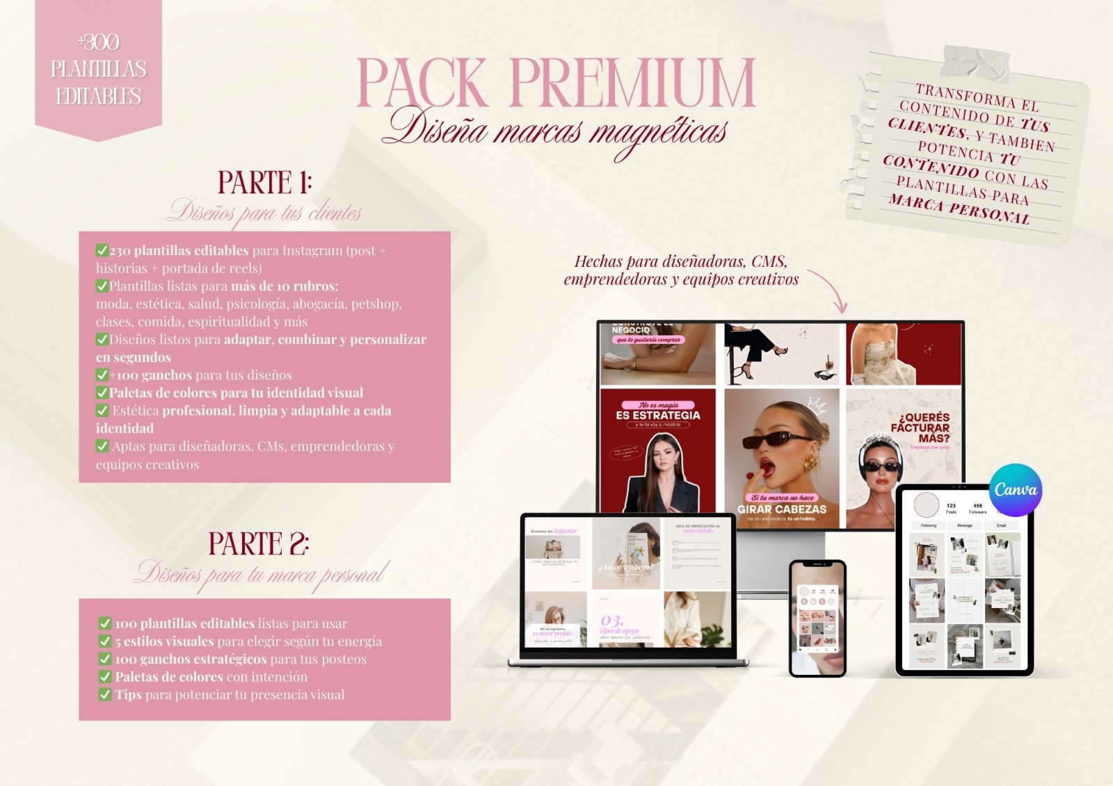 Este pack fue creado especialmente para Community Managers, Diseñadoras y Emprendedoras que necesitan elevar sus redes y las de sus clientes, ofreciendo una identidad visual clara, moderna y profesional 🌸