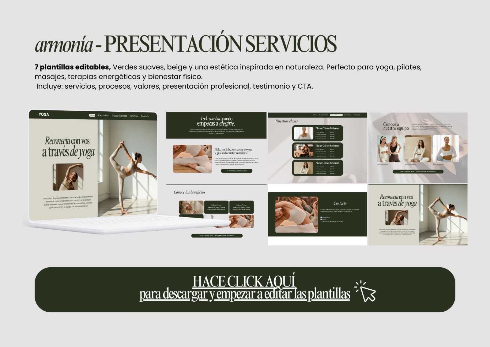 Estas plantillas fueron diseñadas para que puedas presentar tus servicios de forma clara, ordenada y alineada a la energía de tu marca