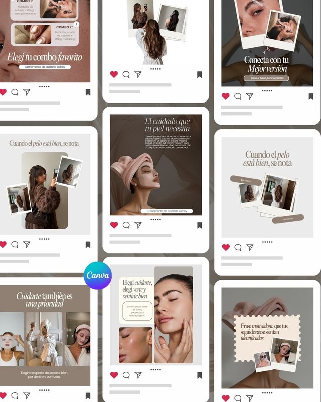 Pack de plantillas editables para Centros de estética - Manicura - Lashes - Peluquería - Estilistas - Tratamientos capilares - etc