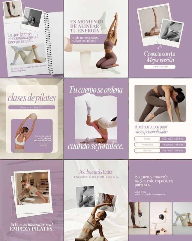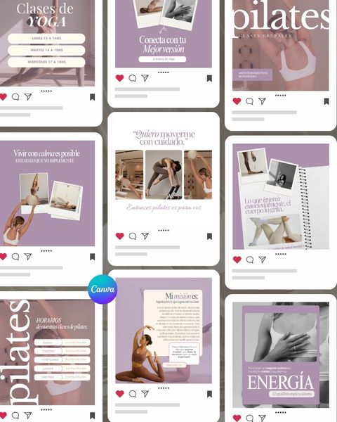 PILATES/YOGA - 70 plantillas editables para posteos de IG