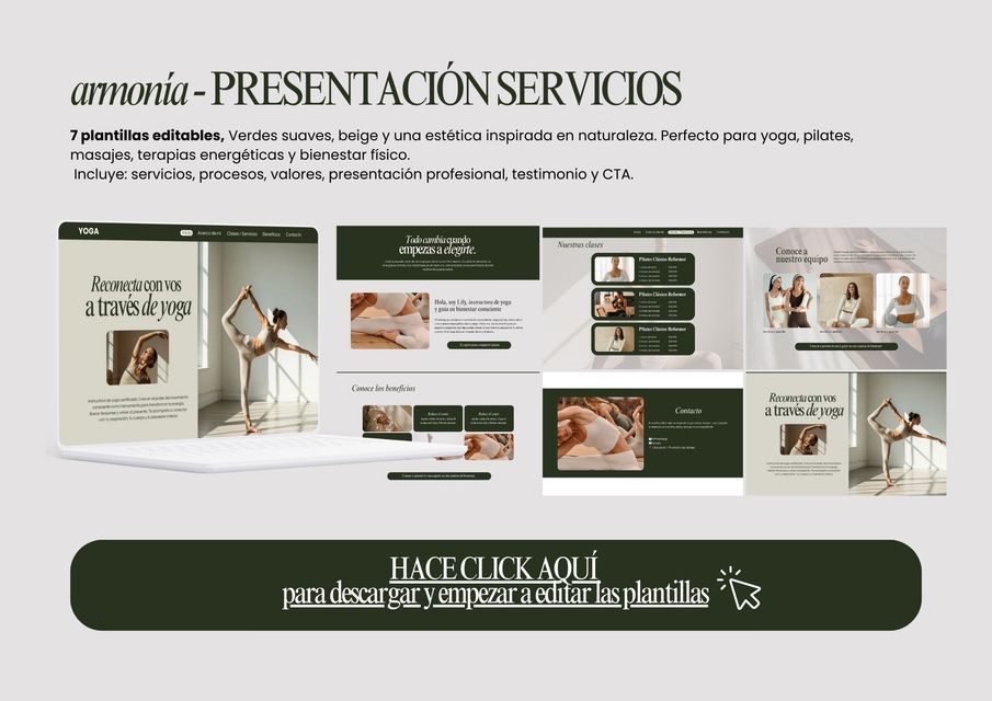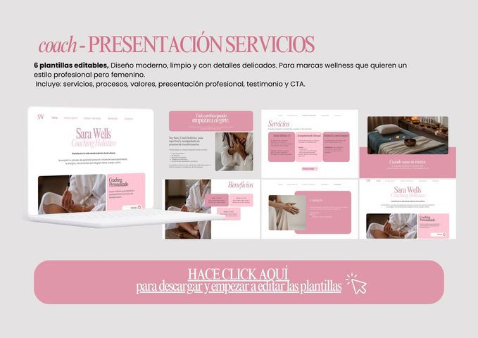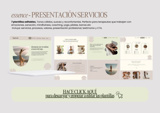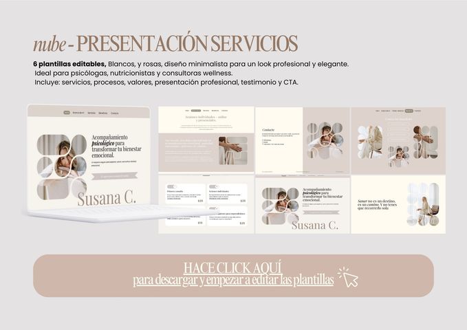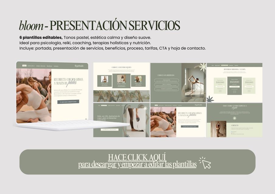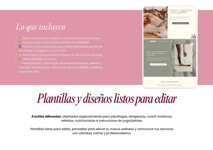 Plantillas editables creadas especialmente para psicólogas, terapeutas holísticas, reikistas, coaches, nutricionistas, instructoras de yoga, pilates etc
