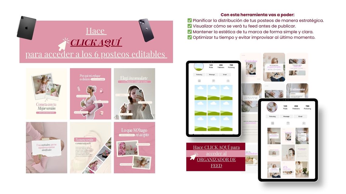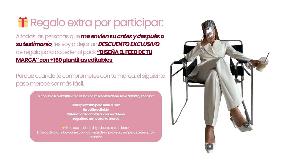 Este recurso es solo el comienzo. Si queres el sistema completo para diseñar tu feed de forma estratégica, el pack Diseña el Feed de tu Marca está pensado para vos con +160 plantillas editables y 8 estilos distintos para que elijas el que mejor se adapta a tu marca